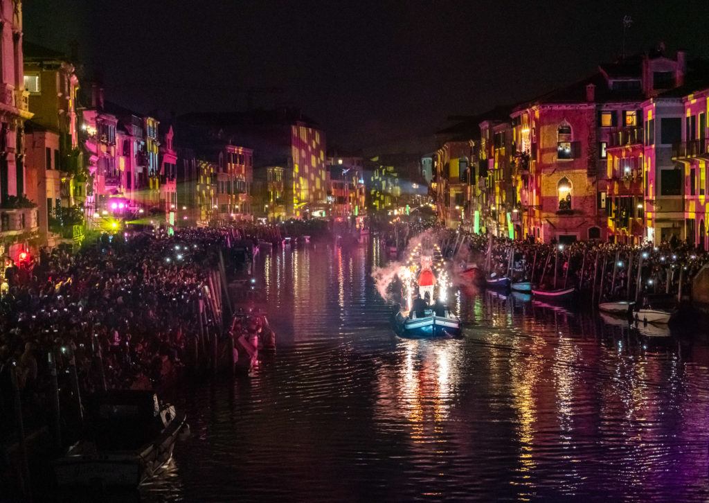 Carnival opens with a series of water parades. The night water parade is usually held on the first Saturday of Carnival. It is a unique spectacle often missed by visitors who come later to Carnival. Crowds line either side of the Rio Cannaregio and across the bridges.