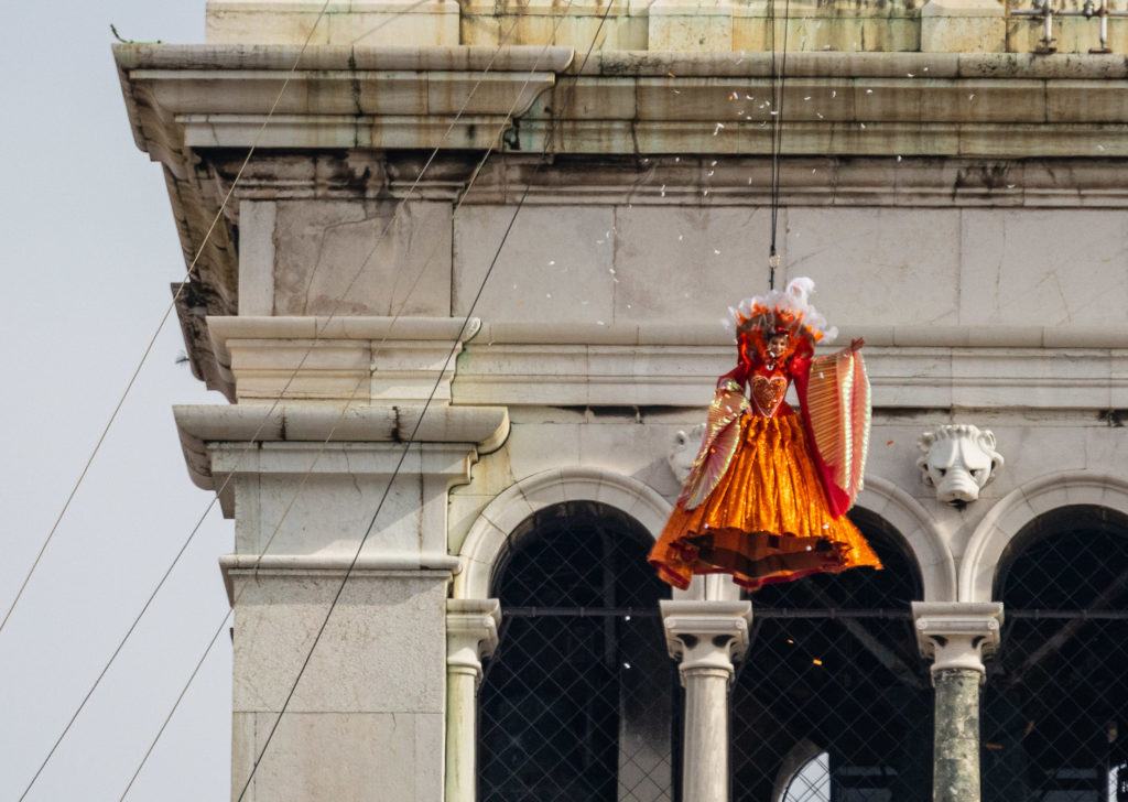 Carnival begins in earnest with the Flight of the Angel. On the middle Sunday, an angel flies (on a wire) from the campanile and descends 300 feet to the stage in San Marco. Plan your spot by taking into account the sun’s direction.