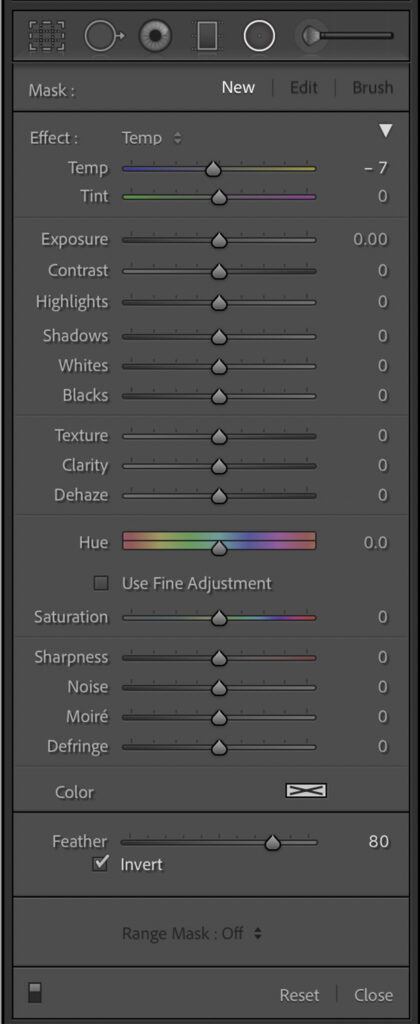 When you choose a local adjustment filter, a panel of sliders appears. At the bottom is the range mask tool. Let’s start by exploring what this tool does, and then I will show you how to use it.