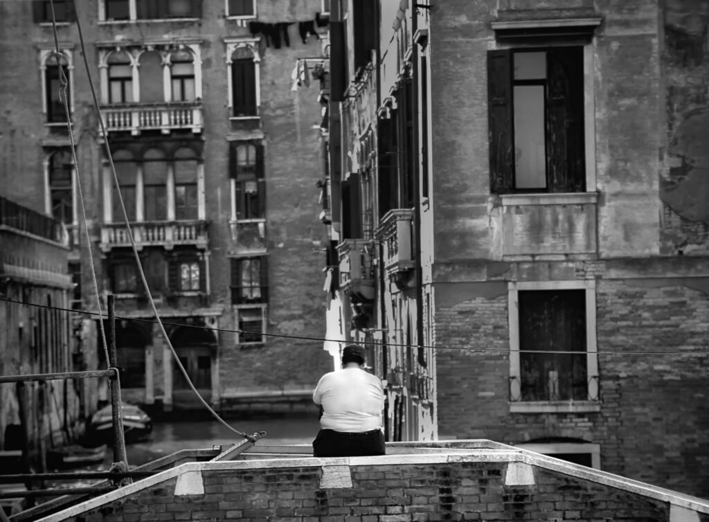 Another example of the power of tonal isolation is through contrast. This scene is quite busy, yet the eyes go right toward the man sitting on the bridge. Why? The power of tonal separation! Photograph by Kent DuFault