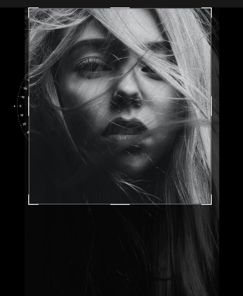 Cropping improves the composition of this stunning black-and-white portrait by eliminating areas of the original frame that were boring! Photograph by Alexander Krivitskiy and Screenshot by Kent DuFault