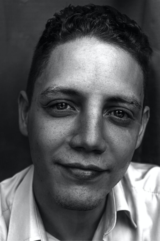 This was a neighbor of mine, and I was fascinated by the shape of his hair. I wanted to accomplish two things with this black-and-white portrait. Firstly, I wanted to emphasize the shape of his hair. Secondly, I wanted to reveal his face so the viewer recognized who it is in the picture.