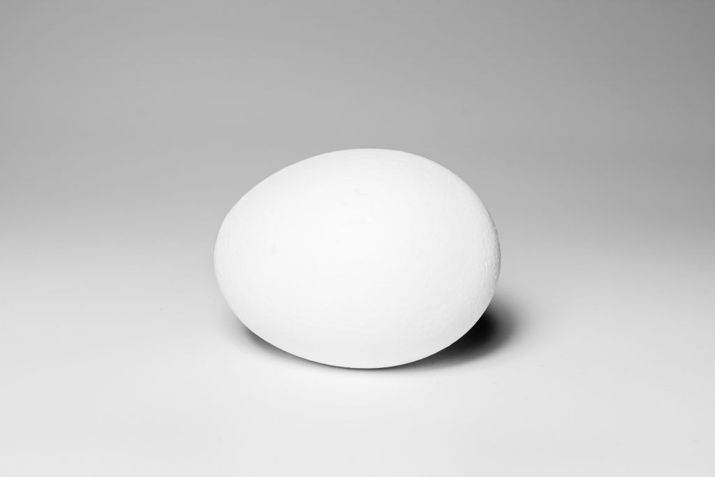 If the egg looks round at all, it’s mostly because we all know what an egg looks like, but the lighting does nothing to emphasize its roundness.