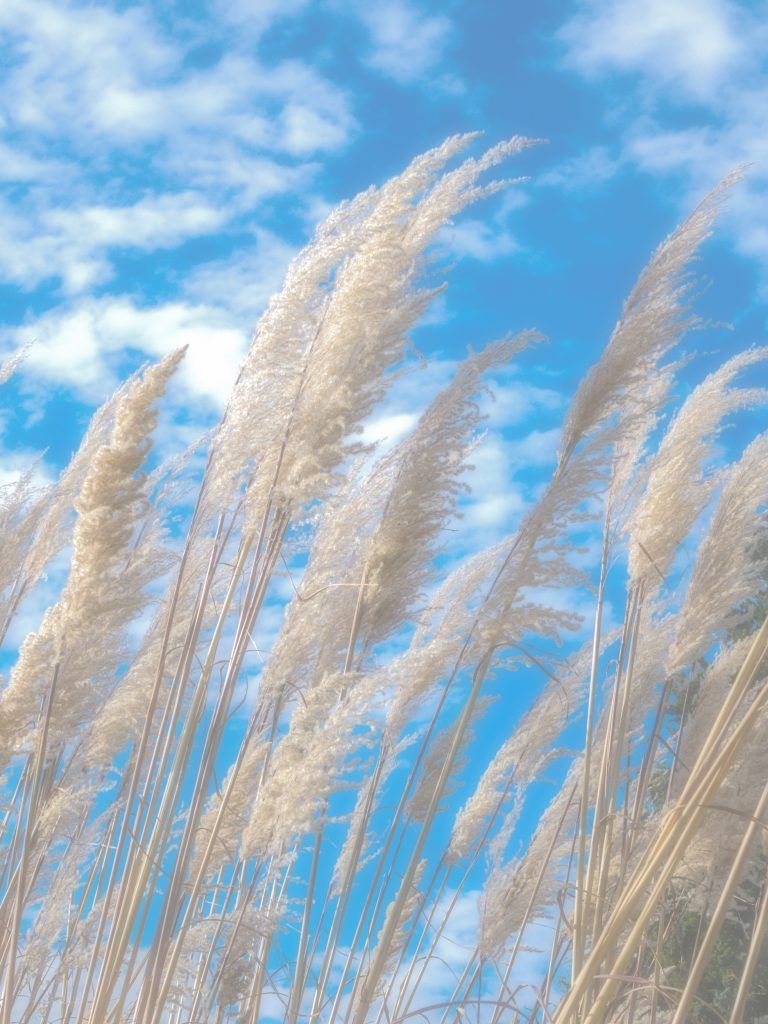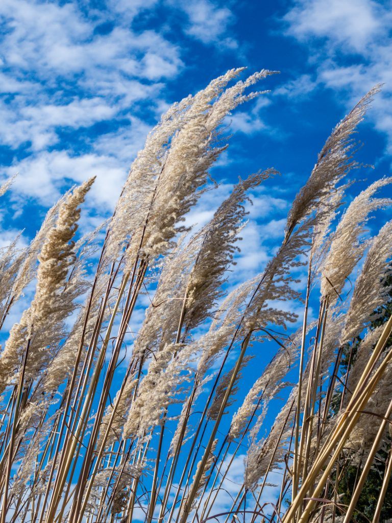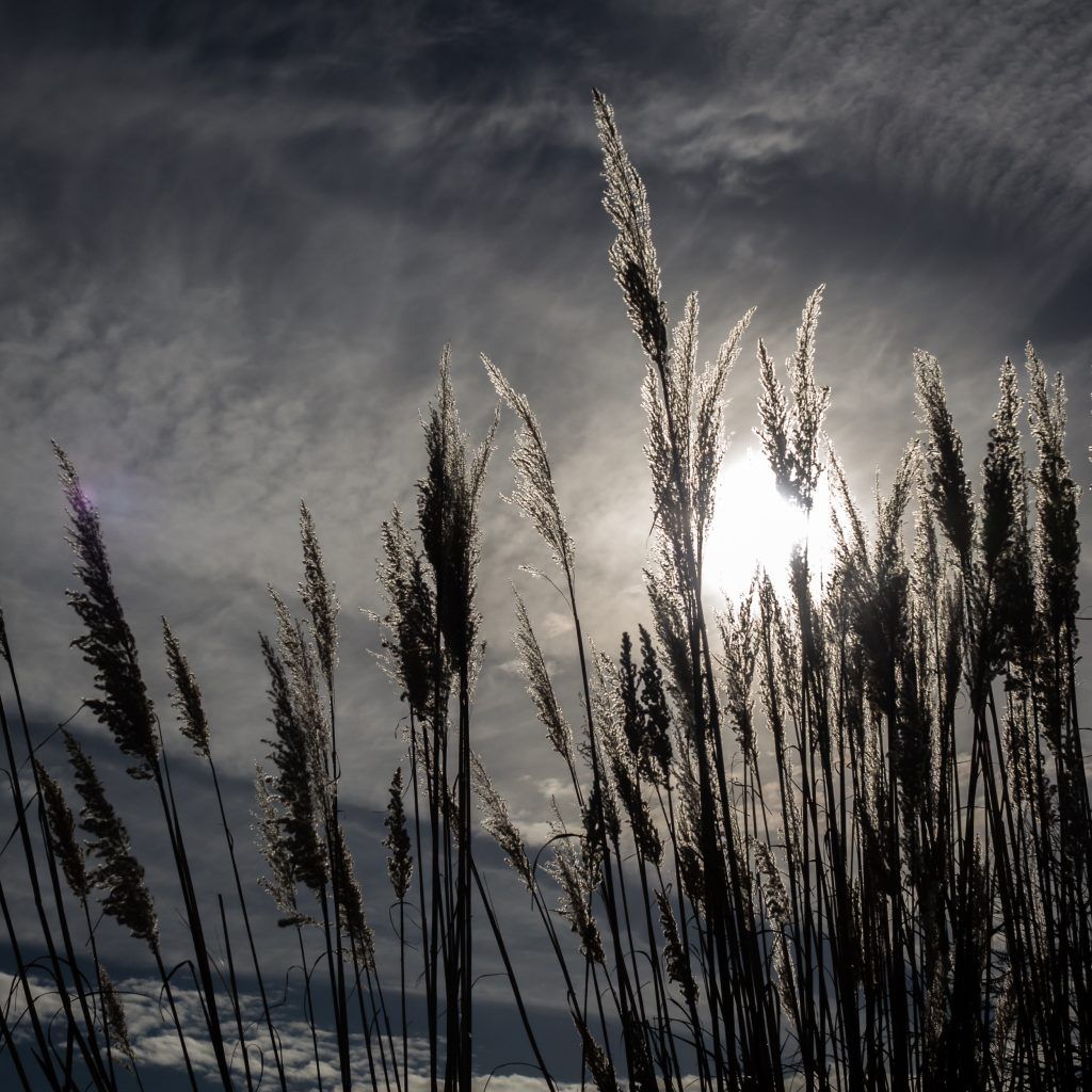 In this image above, the sun is right in the picture, coming through a thin layer of clouds. In this case, I wanted to emphasize the texture of the pampas grass and those luminous clouds.