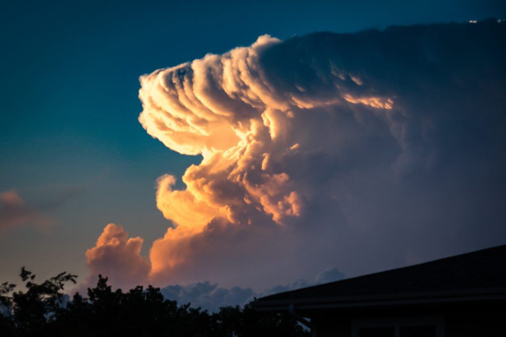 This is a classic anvil thunderhead at sunset. The sun is just out of frame to my left and behind the cloud formation. Photo by Charles Haacker