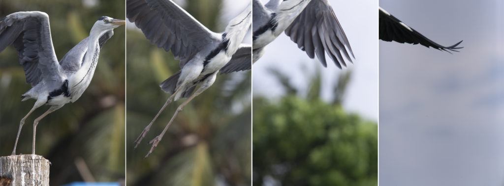 Here’s a great example of how to get it wrong. I’m framing this wonderful giant heron with my 300mm lens, and it gets spooked and takes off. I continue shooting in the hope of pulling off a compositional miracle, but of course, I’m far too close and miss the shot. The trick is to pull back a bit; maybe to a 150mm or 200mm setting so that the wider field of view can accommodate your subject’s movement. You can always crop later. Photograph by Robin Nichols