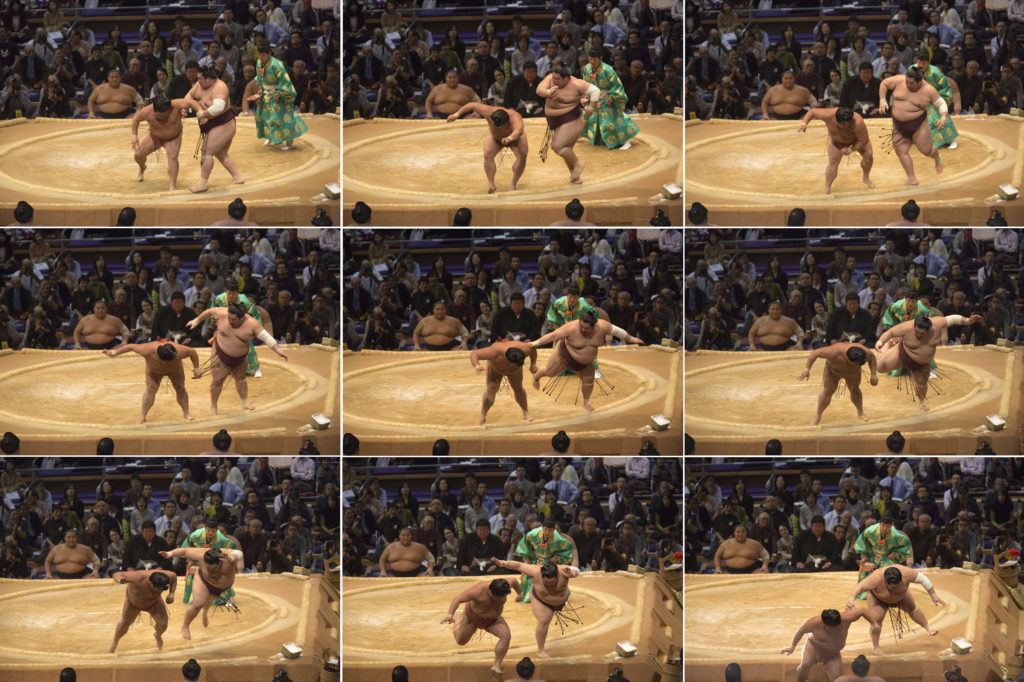 If you want to speed up your shot rate, one trick is to set the camera to record JPEGs only because they record faster than a RAW file. Set the camera’s drive mode to continuous high and keep shooting. Provided the scene lighting is not contrasty, as you see in this sumo match in Hakata, Japan, you’ll get pretty even exposure results. Photograph by Robin Nichols