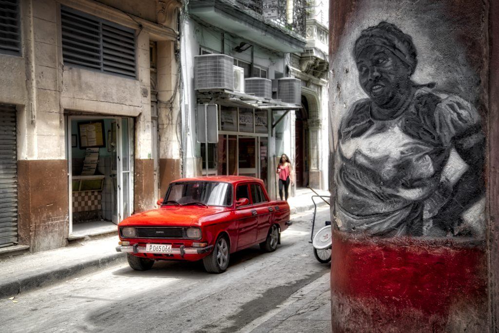 Wall art features highly all over Cuba. Most of it is political, but there’s also a lot of fun stuff put up by locals that can be included in a composition to add color or interest to an otherwise rather drab street scene. Photo by Robin Nichols