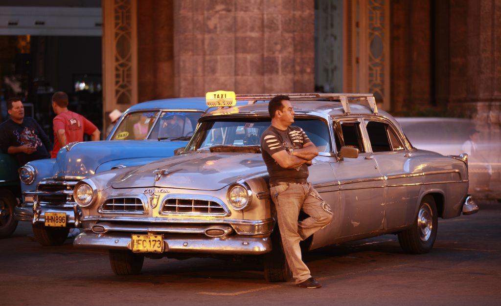 Shooting at night, even in a brightly lit location, requires a long exposure. In this example of a taxi driver and his Chrysler, it was a quarter of a second. You cannot hand-hold a long exposure like this so use a tripod where possible, rest the camera on something solid, or shoot with a monopod. Photo by Robin Nichols