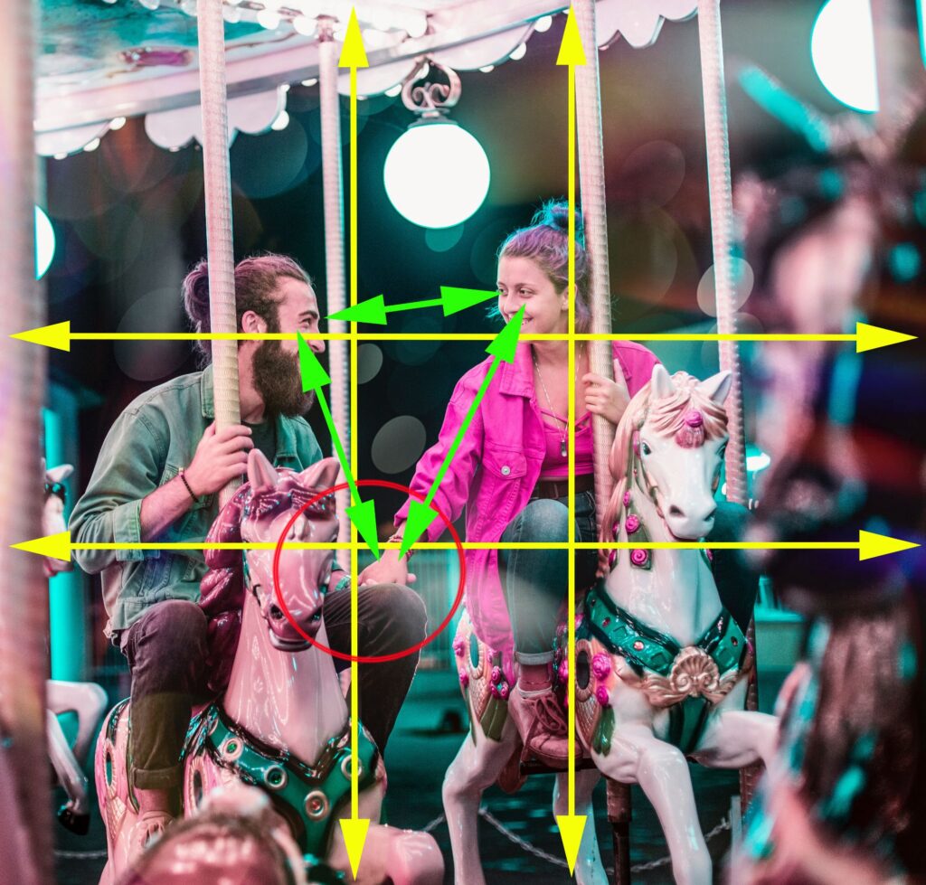 - Note that the heads of the two subjects and the carousel ponies fall near a cross-section for the Rule of Thirds.