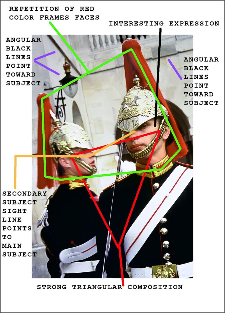 - The eye contact and touching hands create a triad of points. Composing in triangles is a known composition tool that works very well. That same triangle was in the image on the previous page but was lost to the framing and use of space.