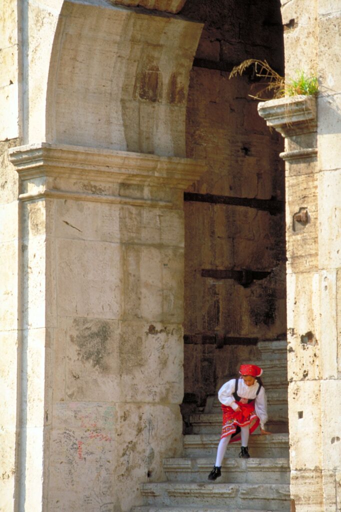 I created the frame break by leaving more room at the top than at the bottom. Why did I do that? I wanted to tell the story of this massive stone structure that this tiny girl was exiting from. Without the arch dwarfing her petite body, that entire story was lost.