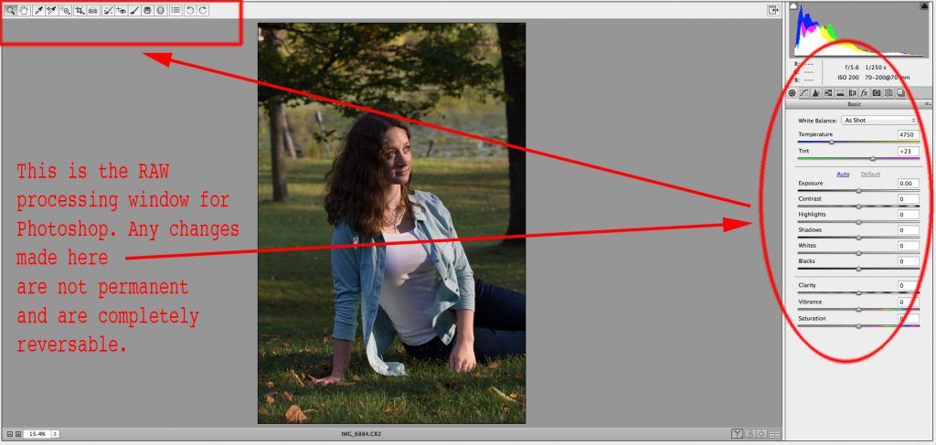 We’ve established what the raw format is- it’s a digital negative. This is an important point for you to remember- all the on board settings in your camera regarding saturation, contrast, sharpness, etc. do not affect the raw file.