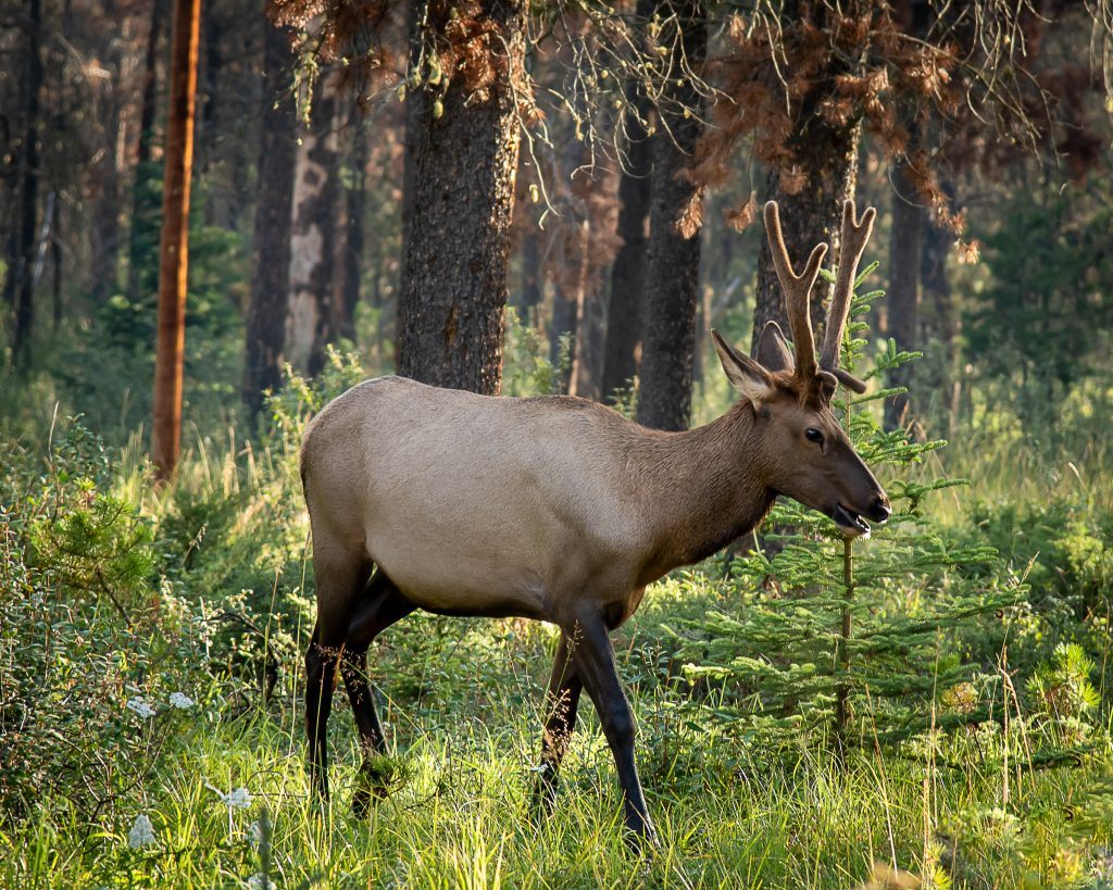 If you are vacationing in nature, the bookend times of the day are typically better for spotting wildlife as well. The image of a bull elk above was taken in the morning. The position of the sun allowed for some nice backlighting of the bull’s fuzzy antlers.