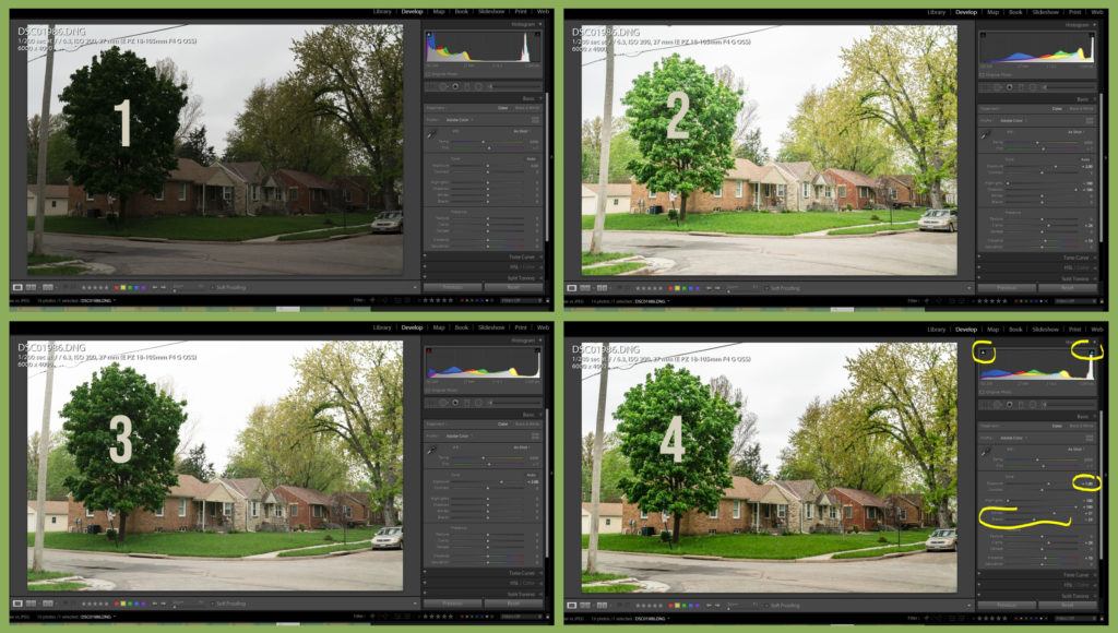 If you have Lightroom or a similar app that shows histograms, open your own series and study the histograms. Process each of the files to closely match the “normal” and watch what happens to the histograms as you work.