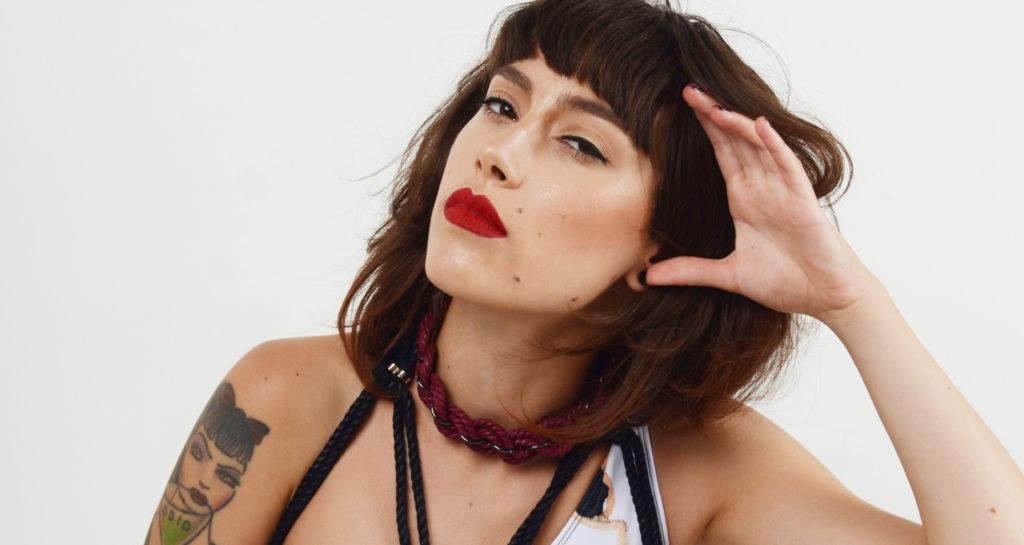 Here the model’s pose creates leading lines pointing the viewer’s eyes to the intended subject — the model’s face. Photograph by Rhiannon D’Averc