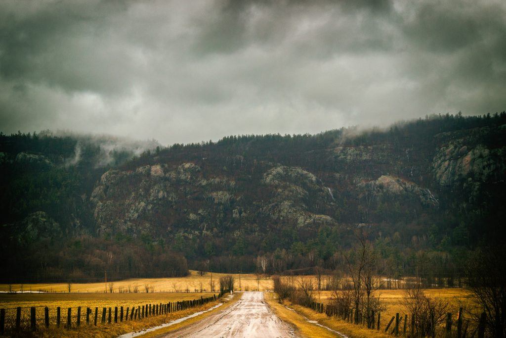 It can be very difficult to find fog, let alone capture it in motion. However, in the cases where you capture rolling fog, you may create a very interesting image. In the image above, I drove down a private road (with permission) to get close to the base of the escarpment. There I found the fog creeping over the summit and cascading down towards the plains. It was a magical moment.