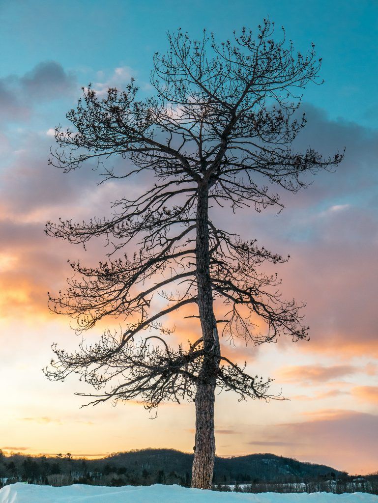 The shot above required lying down on a slush covered road. I wanted to accentuate the tree against the sky while still including a sliver of the mountains in the background, and that required some contortion. Fortunately, many cameras come equipped with tilting LCD screens – use this to your advantage and avoid becoming a speed bump.