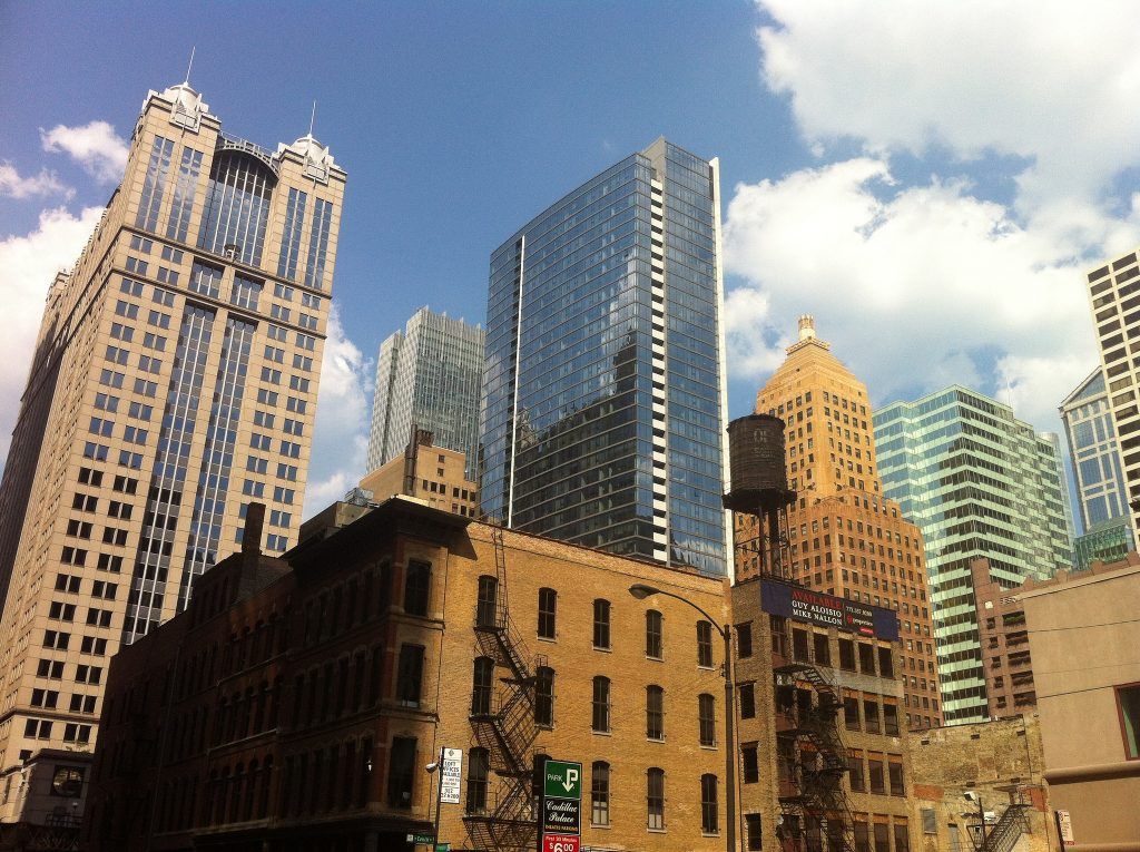 Compare these three cityscapes below– worm view (top), bird’s eye view (center), and the eye-level view (bottom). Can you see how each perspective presented the buildings differently?