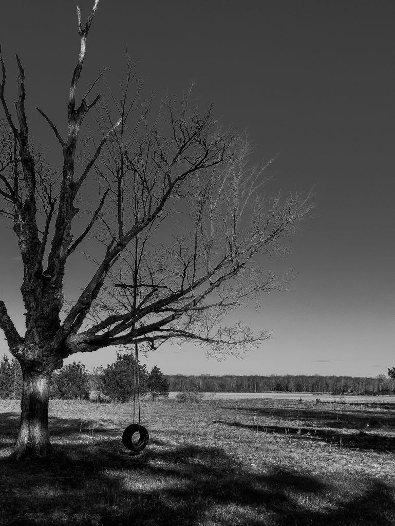 The picture of the tire swing and tree demonstrates dappled shadows. Photo by David Veldman