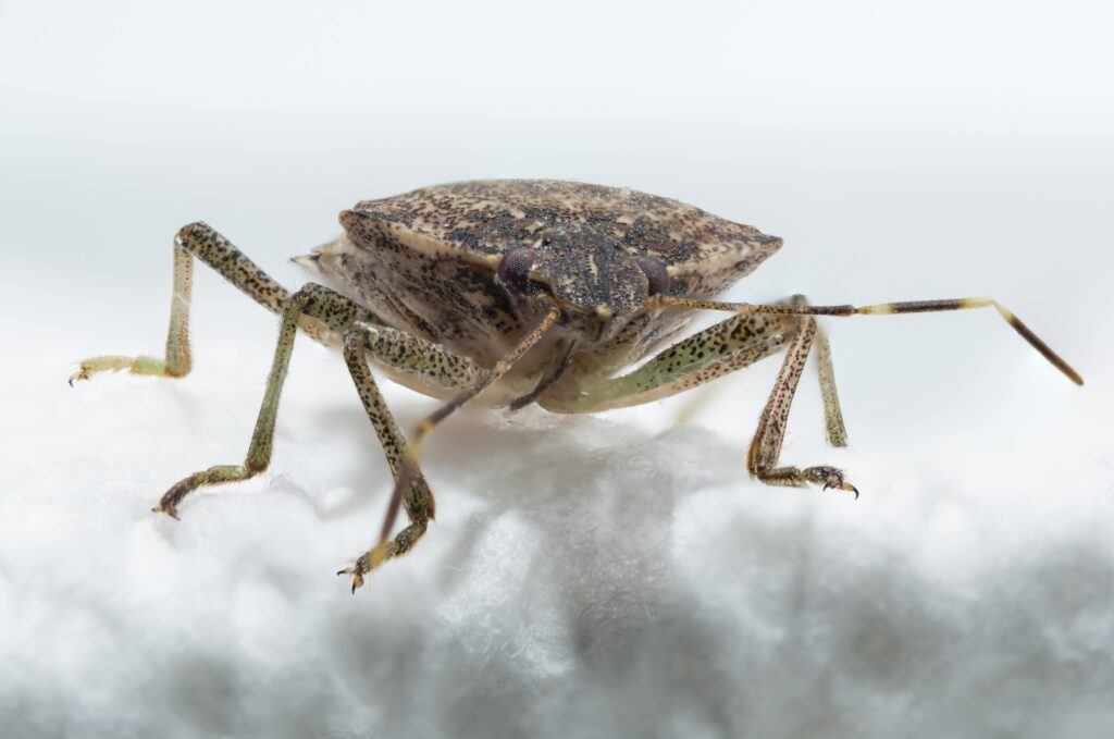 This brown marmorated stink bug was found dead on a bit of paper towel. I made 11 separate frames with a focus rail on a tripod and “stacked” the images to get the entire bug in sharp focus. Photograph by Charles Haacker