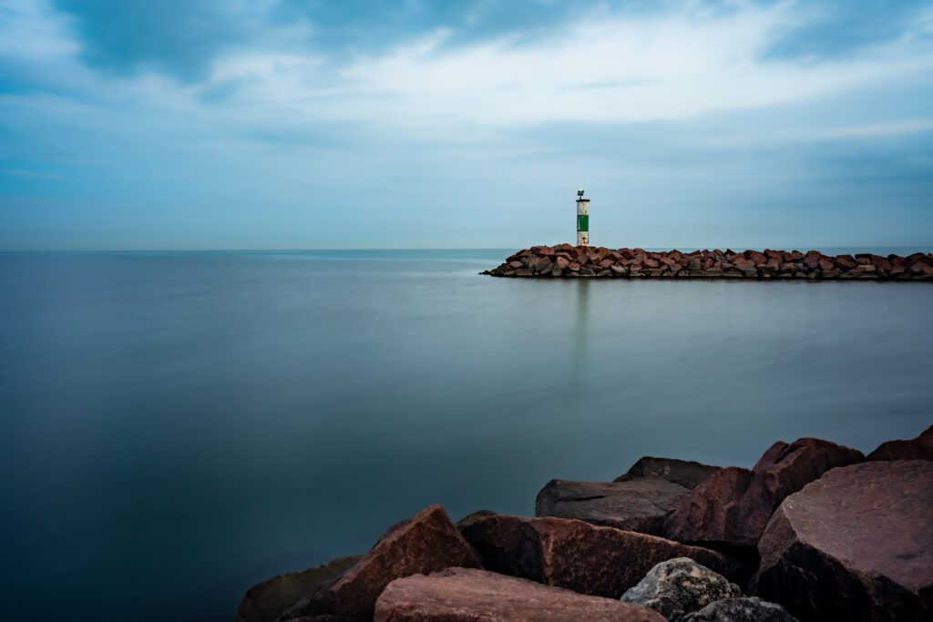Using Clarity, Texture, and Dehaze on different parts of this image, I can bring out the texture in the rocks but smooth out the clouds and water. Photograph by Jenn Mishra