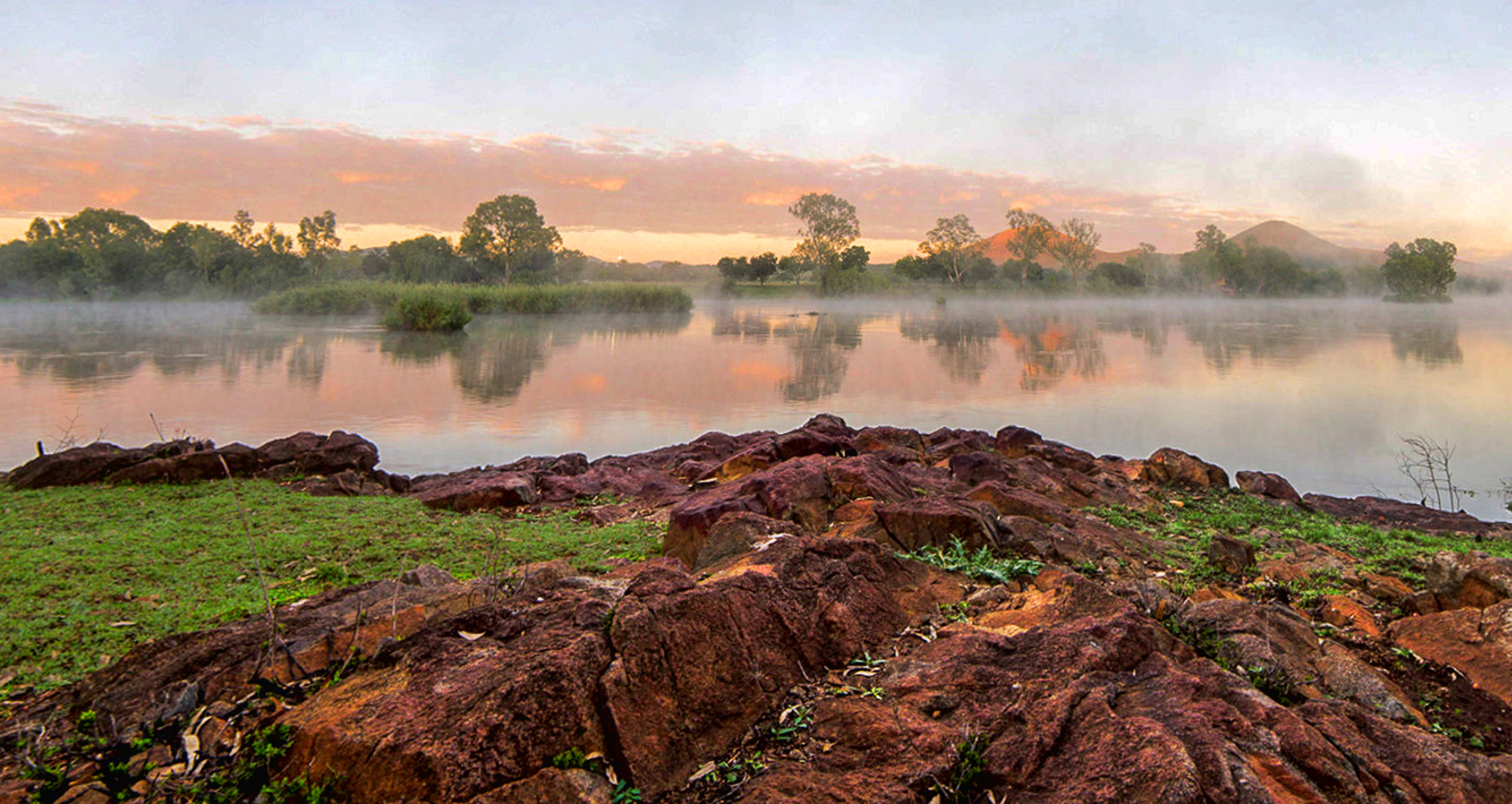 This image is a good case in point. The foreground helps to divide the image into a strong foreground section (the rocks), middle ground section (the river), and background section (the tree line and sky).