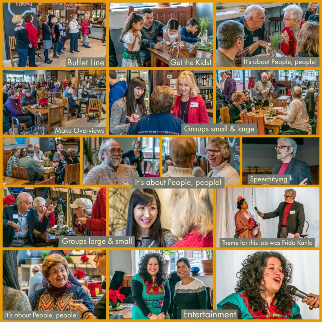 I create establishing shots, the check in, record the table décor, make overviews, mixes of crowd shots, small groups, tête-à-têtes, reaction shots, and shots of whatever passes in front of my lens as I keep moving and circulating. Unless the client has been specific about what they need, a good mix of everything should do the job.